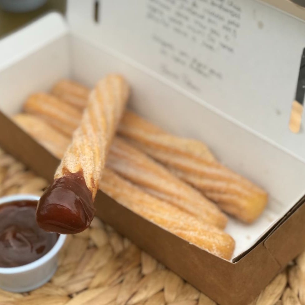 20 mini churros Recheio: Doce de leite cremoso Cobertura: Açúcar e canela