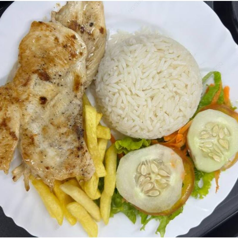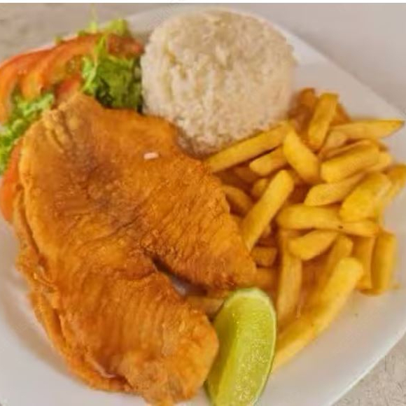 file de tilapia sem espinho com arroz feijao farofa e batata