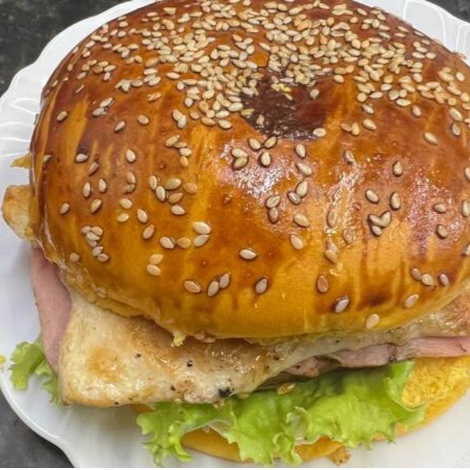pao de brioch delicioso com frango file e hamburgue de 56g peça ja