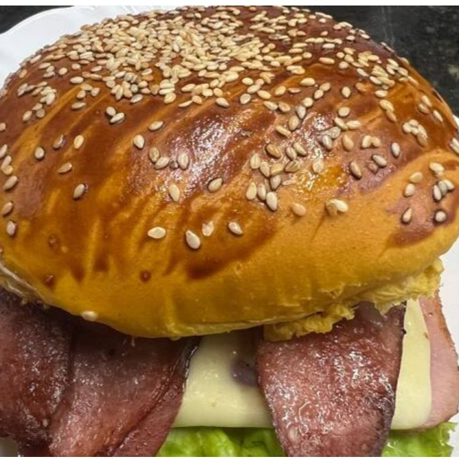 queijo presunto alface e tomate com 2 hamburgue 56g e com um delicioso pao de brioche
