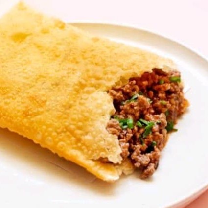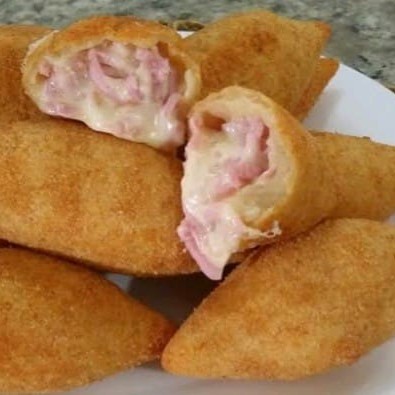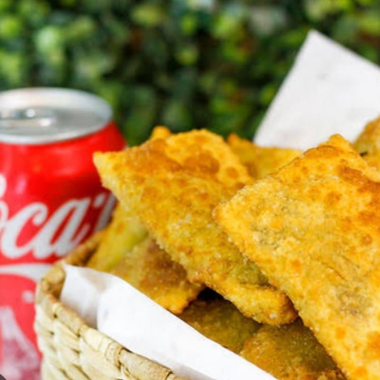 1 pastel de carne médio e um banana c doce de leite médio e um coca lata 350ml