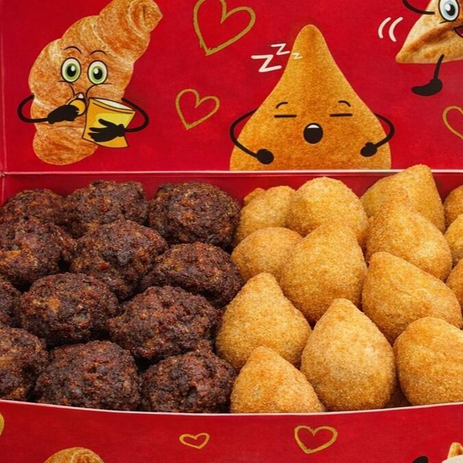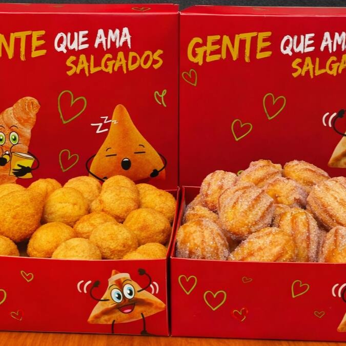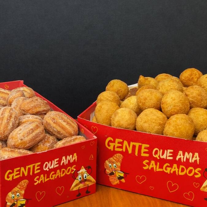 Contém 50 Salgadinhos Crocantes + 20 Mini Churros. Salgados fritos na hora em óleo de algodão e entregues quentinhos, com o padrão de qualidade Lari Salgados. Perfeitos para matar sua fome!