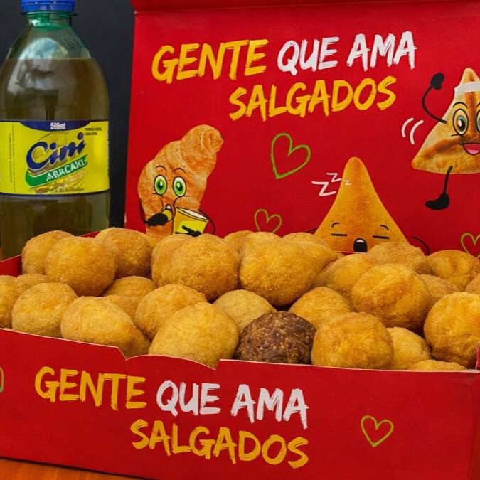 Contém 40 Salgadinhos Crocantes + Refri (600ml). Salgados fritos na hora em óleo de algodão e entregues quentinhos, com o padrão de qualidade Lari Salgados. Perfeitos para matar sua fome!