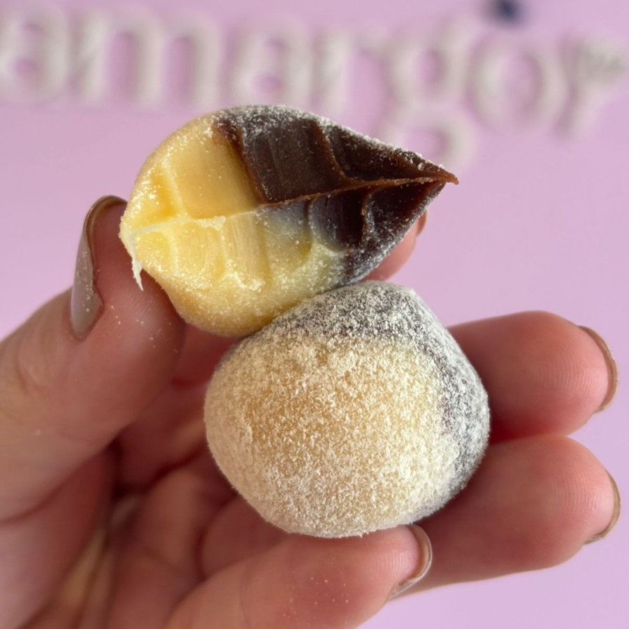 Apresentamos o 'Moranguinho', um deleite da categoria 'Brigadeiros'. Trata-se de um brigadeiro delicadamente preparado com Nesquick, proporcionando um sabor irresistível e único. Este doce é generosamente envolto em um pó de Leite Ninho, que acrescenta um toque cremoso e suave, tornando cada mordida uma experiência realmente prazerosa. O 'Moranguinho' é o equilíbrio perfeito entre o sabor intenso do chocolate e a delicadeza do leite em pó, uma verdadeira delícia que irá agradar a todos os paladares. Experimente e se encante!