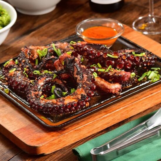 Explorando a culinária dos 'Pescados y Mariscos', apresentamos o 'Pulpo a la Parrilla'. Este prato esbanja sofisticação e sabor, consistindo em tentáculos de polvo cuidadosamente grelhados. Cada pedaço desse requintado fruto do mar exala uma suculência sem igual, agradando os paladares mais exigentes. A experiência gastronômica é elevada ainda mais pela grelha, que adiciona uma nota defumada e intensifica o sabor do polvo, tornando cada garfada inesquecível.