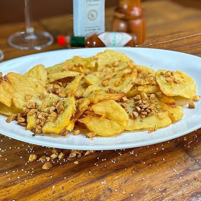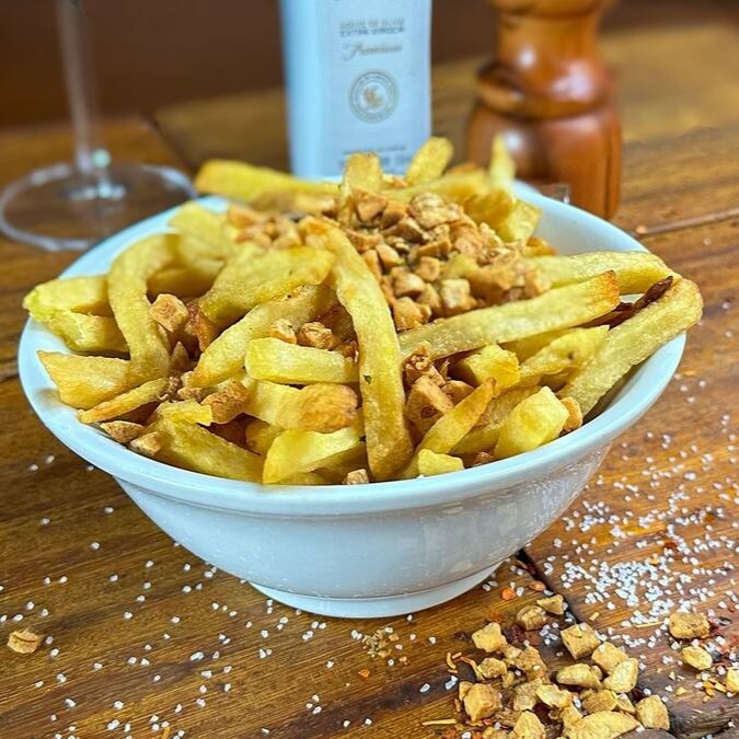 Batatas fritas com alho e salsinha.