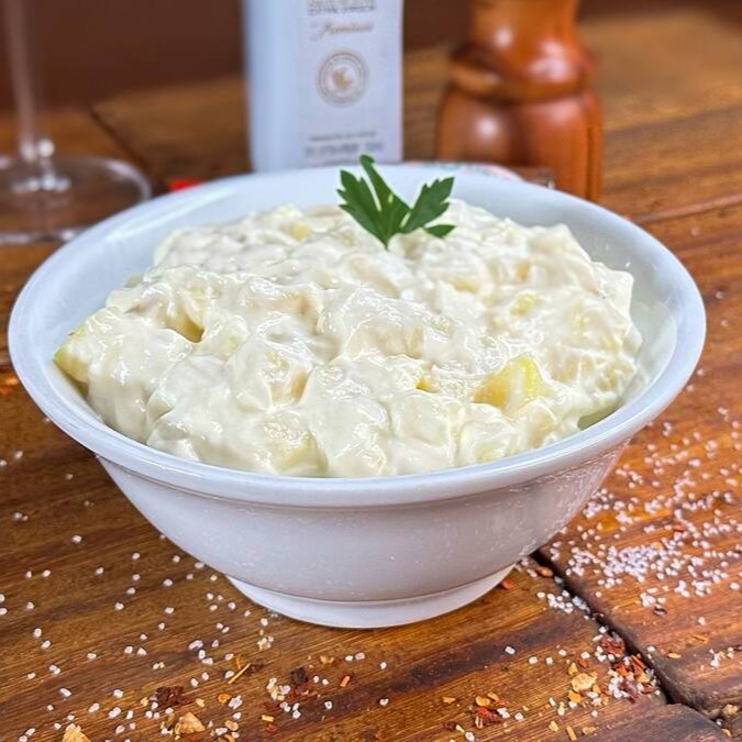 Deliciosa Maionese de Batatas. Essa tradicional receita é preparada com batatas cuidadosamente selecionadas, proporcionando uma textura suave e irresistível. Perfeita para acompanhar qualquer refeição, essa maionese é uma opção leve e saborosa que sempre agrada.