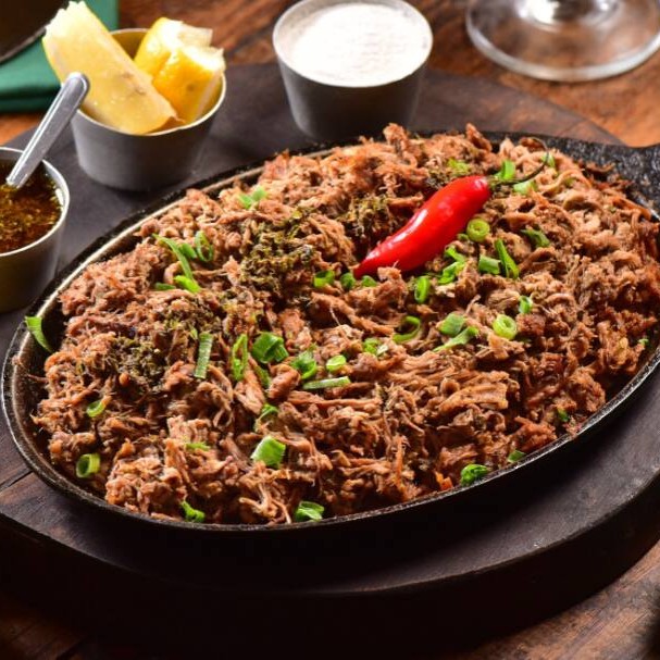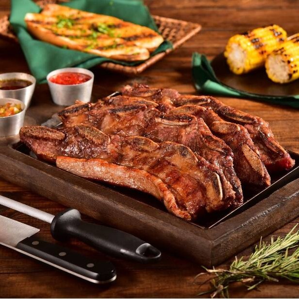 Nosso 'Asado de Tira' (assado de tira), uma verdadeira estrela da categoria 'Carnes', é uma costela de boi primorosamente selecionada, preparada com um corte especial, a onde, é cuidadosamente trabalhada para realçar seu sabor autêntico e suculento.