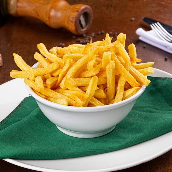 Deliciosas e irresistíveis, as 'Papas Fritas' são o acompanhamento perfeito para qualquer prato. Cuidadosamente selecionadas, nossas batatas são preparadas em óleo de girassol até alcançarem a textura ideal: crocante por fora e macia por dentro. Douradas e saborosas, elas são o equilíbrio perfeito entre o salgado e o crocante, fazendo delas as protagonistas de qualquer refeição.