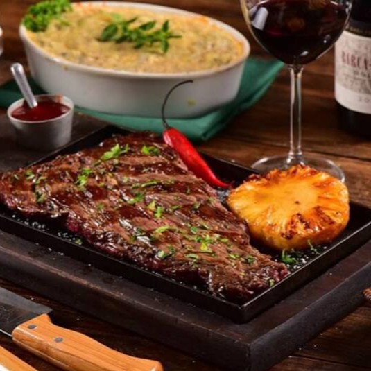 Uma autêntica especialidade argentina. Este prato de destaque é preparado com um suculento corte de contra filé, cuidadosamente selecionado para garantir a máxima qualidade. A carne é grelhada à perfeição em parrilla, que lhe confere uma textura irresistivelmente macia e um sabor robusto que irá agradar até mesmo os paladares mais exigentes.