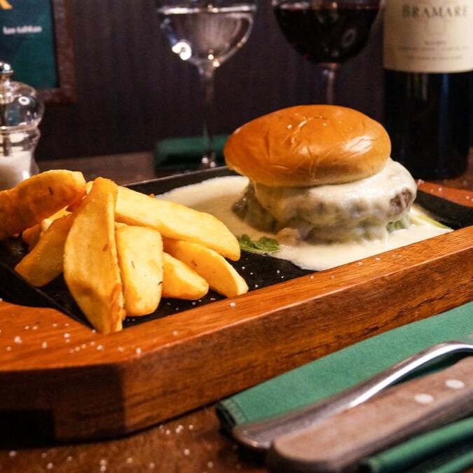 Este prato é composto por pão brioche uma generosa camada de rúcula fresca, fatias de damasco suculentas e uma inigualável mussarela de búfala, tudo isso realçado por um leve e delicioso toque de Queijo Chèvre. O protagonista um Hamburguer Wagyu 180g, uma carne famosa por sua incrível maciez e sabor marcante. Para completar a experiência, o prato é acompanhado por Batata fritas.