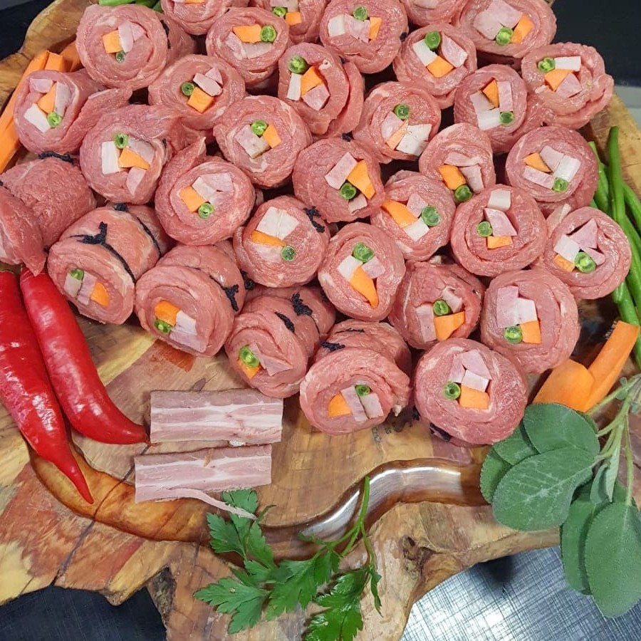 Delicioso 'Bife à Role', uma especialidade perfeita para as refeições do Dia a Dia. Recheado com cenouras e vagens frescas, e um toque irresistível de bacon e calabresa, nosso 'Bife à Role' é uma verdadeira explosão de sabores. Uma opção perfeita para quem busca uma refeição gourmet no conforto de casa. Produto congelado com peso aproximado de 500gr