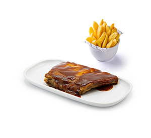 400 g* - Suculenta costelinha, assada no forno e finalizada na churrasqueira, coberta com nosso delicioso molho barbecue. Servida com um acompanhamento à sua escolha. *Peso in natura antes da cocção.