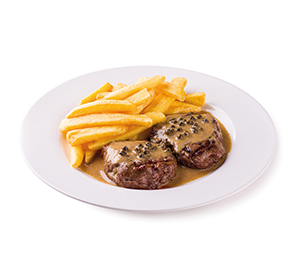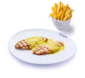 2 filés (250 g*). Servido com um acompanhamento à sua escolha. *Peso in natura antes da cocção.