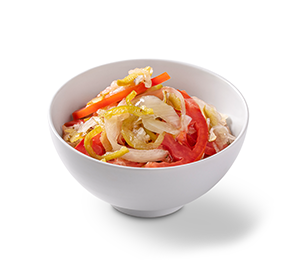 220 g - Salada de cebola condimentada com tomates e pimentão.