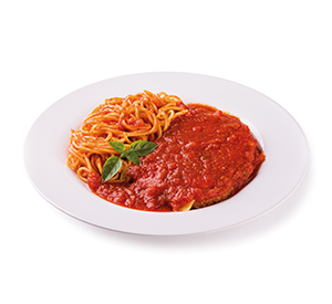 Nossas carnes são empanadas (110 g*), cobertas com queijo muçarela e muito molho de tomates orgânicos (230 g). Escolha a sua massa (spaghetti, penne ou ravioli de ricota e espinafre). *Peso in natura