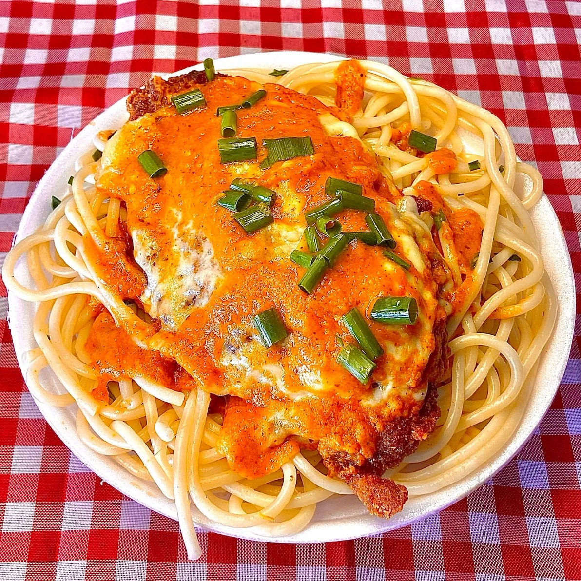 Clássico irresistível! Filé de frango empanado e coberto com molho de tomate caseiro e queijo gratinado, servido com espaguete al dente. Uma combinação deliciosa e completa!
