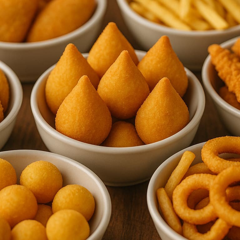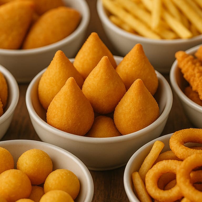2 Marmitas médias + Coca-Cola 600mlArroz Arroz integral Feijão Macarrão Farofa Quibebe de abóbora Batata palha Strogonoff de carne Frango frito Linguiça
