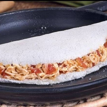Deliciosa Tapioca, Acompanha 200g De Frango Desfiado Com Queijo E Cream Cheese.