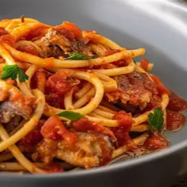 Marmita P de um delicioso macarrão ao molho vermelho, carne moída e cheiro verde.