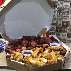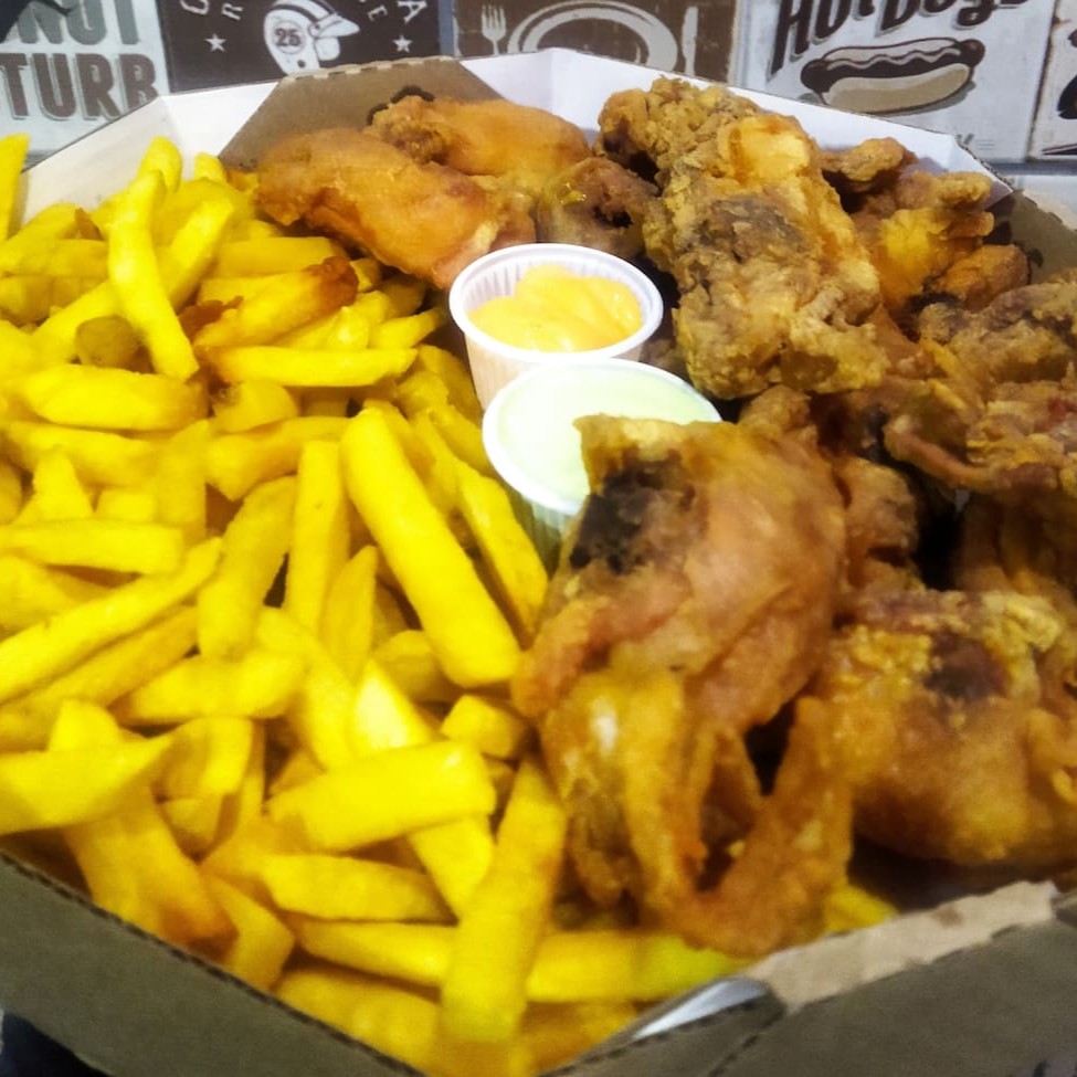 400 gramas de frango a passarinho 400 gramas de batata 400 gramas de Anel de cebola