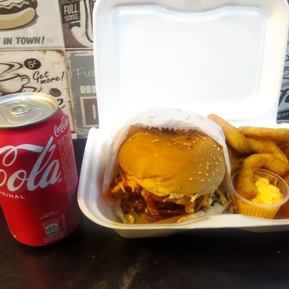 1 x maroto mais 100 gramas de cebola mais refrigerante Coca cola lata
