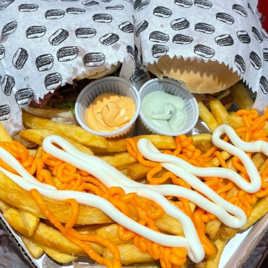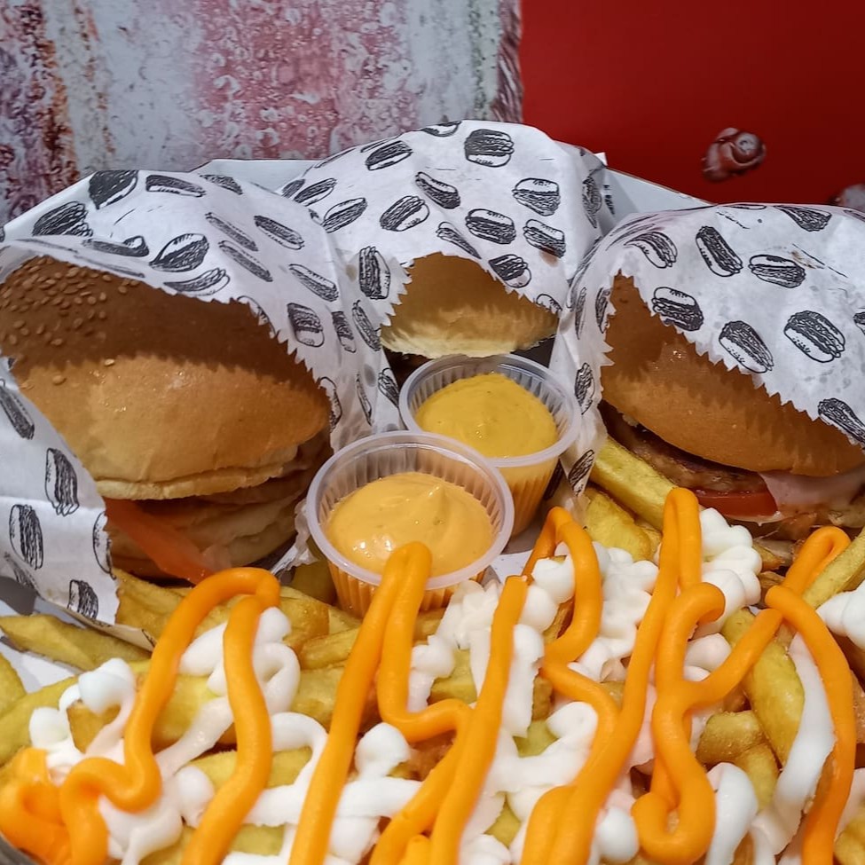 • 2x Cheeseburgers • + 300g de batata frita crocante com cheddar e Catupiry Perfeito pra dividir ou se jogar sozinho sem culpa!