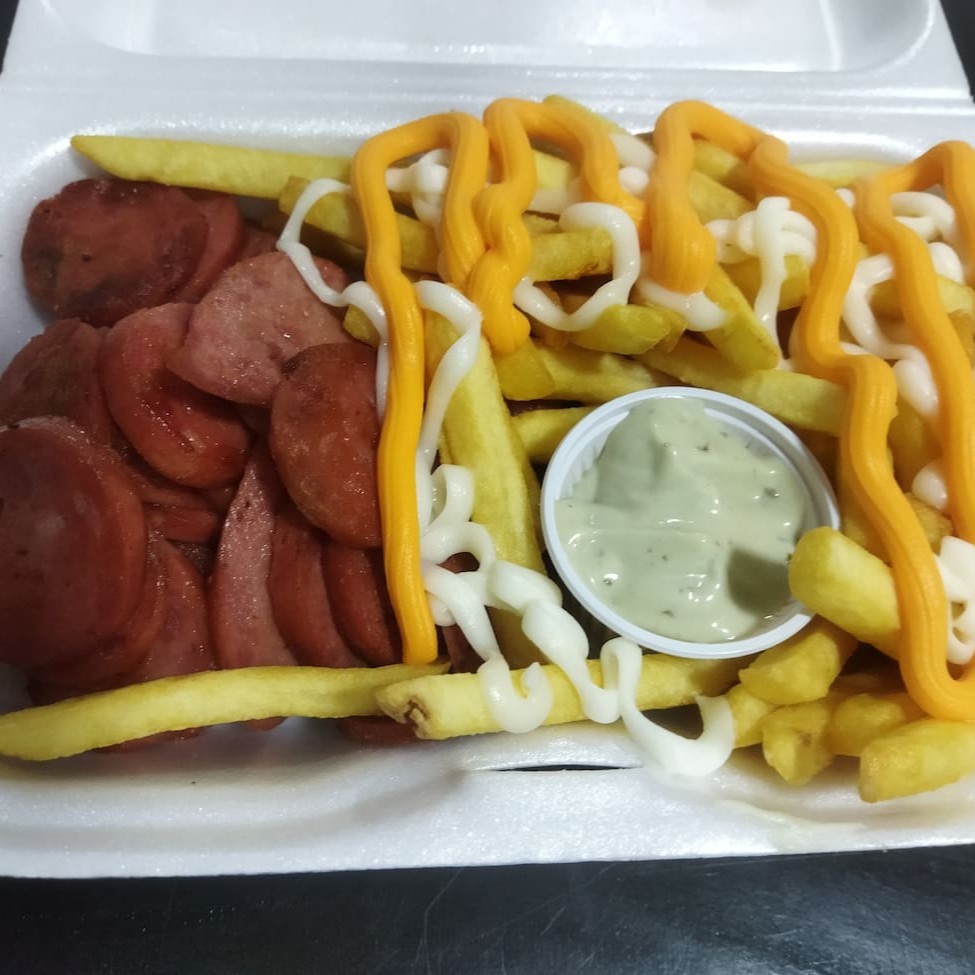 250gramas de batata,250 gramas de calabresa, cheddar e Catupiry