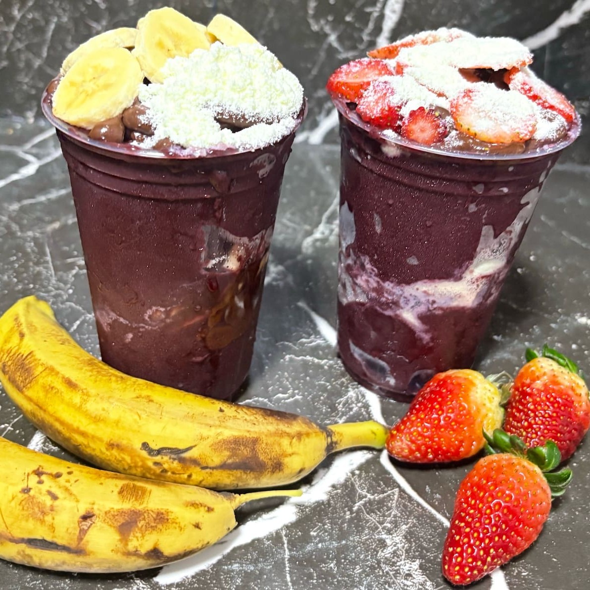 Açaí de morango 300 ml Açaí de banana 300 ml com creme de Ninho e leite em pó