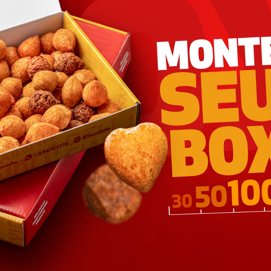Box com 100 Deliciosas Mini Coxinhas de Frango Locoxinha. :D