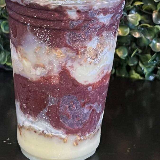 Açai super cremoso, leite em pó, leite condensado e uva verde sem semente