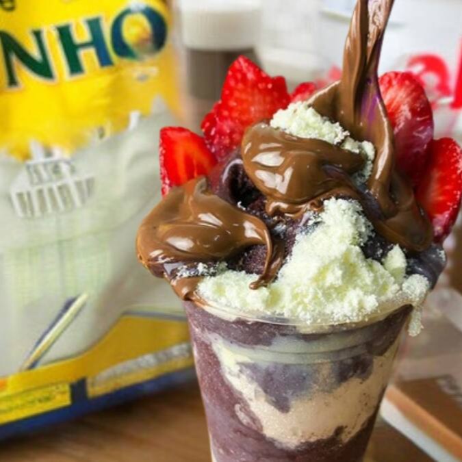 Açai super cremoso, leite em pó, creme de leitinho e Nutella