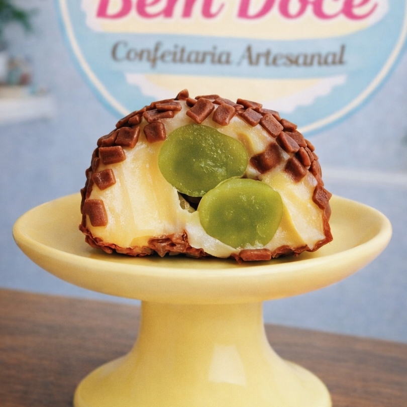 Divino Brigadeirão super cremoso de Ninho, recheado com uvas verdes fresquinhas que explodem na boca, trazendo um contraste irresistível com o doce. Finalizado com chocolate granulado que derrete junto na mordida. Um espetáculo de textura e sabor.