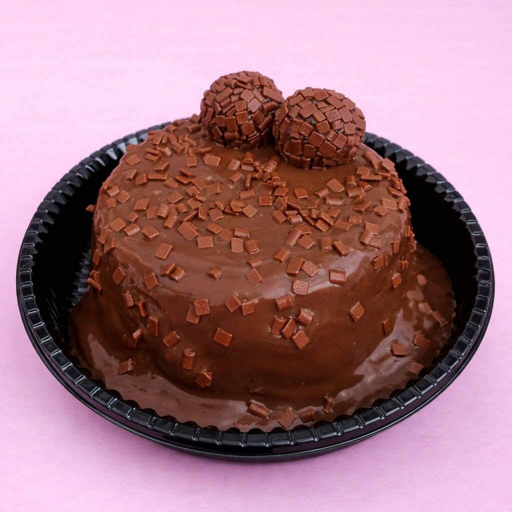 Composto por brownie, brigadeiro branco cremoso, muito morango e brigadeiro tradicional finalizado com granulado nobre 400gr.