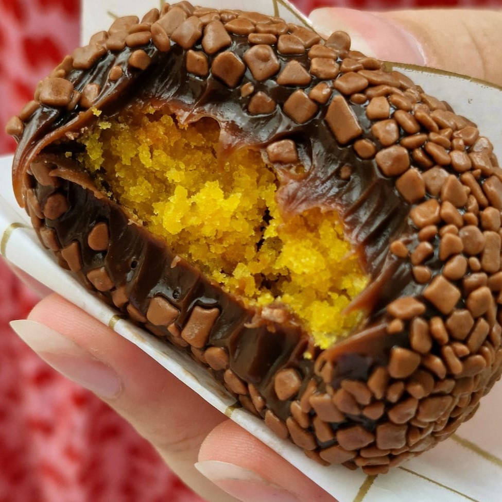 Uma explosão de sabor em cada mordida! Nosso brigadeiro gourmet de chocolate belga, macio e intenso, envolve um irresistível recheio de bolo de cenoura fofinho e úmido. A combinação perfeita entre o clássico e o surpreendente, unindo o docinho mais amado do Brasil com a receita caseira de bolo de cenoura que todo mundo adora.