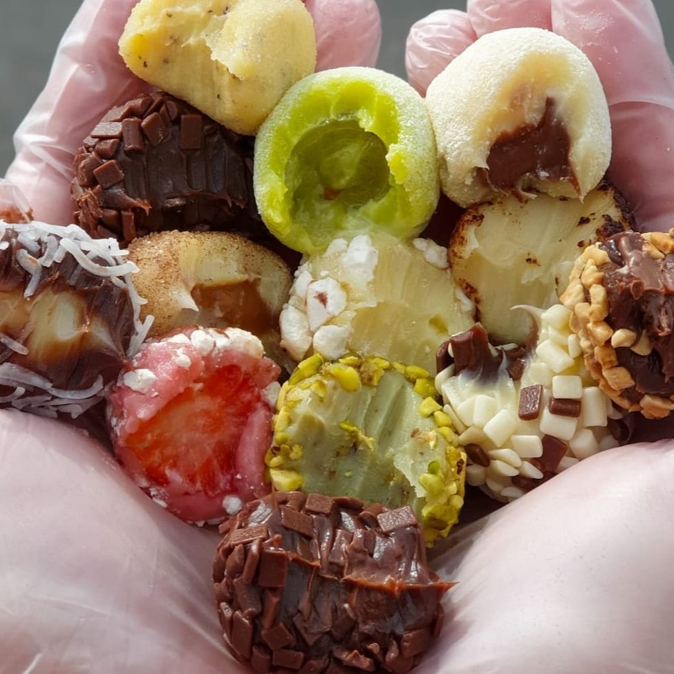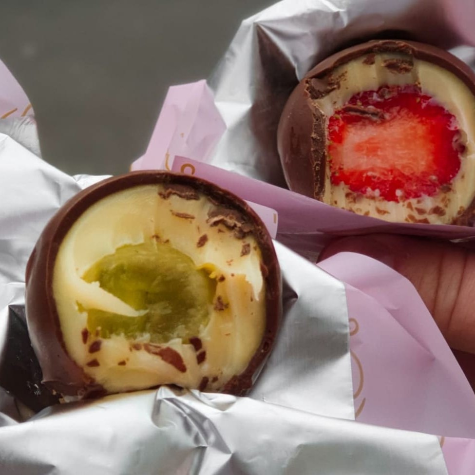 Desfrute do nosso 'Bombom de Fruta', uma joia da categoria 'Bombons/Trufas'. Este delicado bombom é feito com um cremoso brigadeiro de leite Ninho, proporcionando uma textura suave e sabor irresistível. No seu interior, descobrirá um recheio de morango fresco ou uva verde sem sementes, oferecendo uma surpresa doce e frutada a cada mordida. Para finalizar, o bombom é generosamente banhado em riquíssimo chocolate ao leite, Este produto é ideal para consumo imediato, garantindo a frescura e qualidade que você merece.