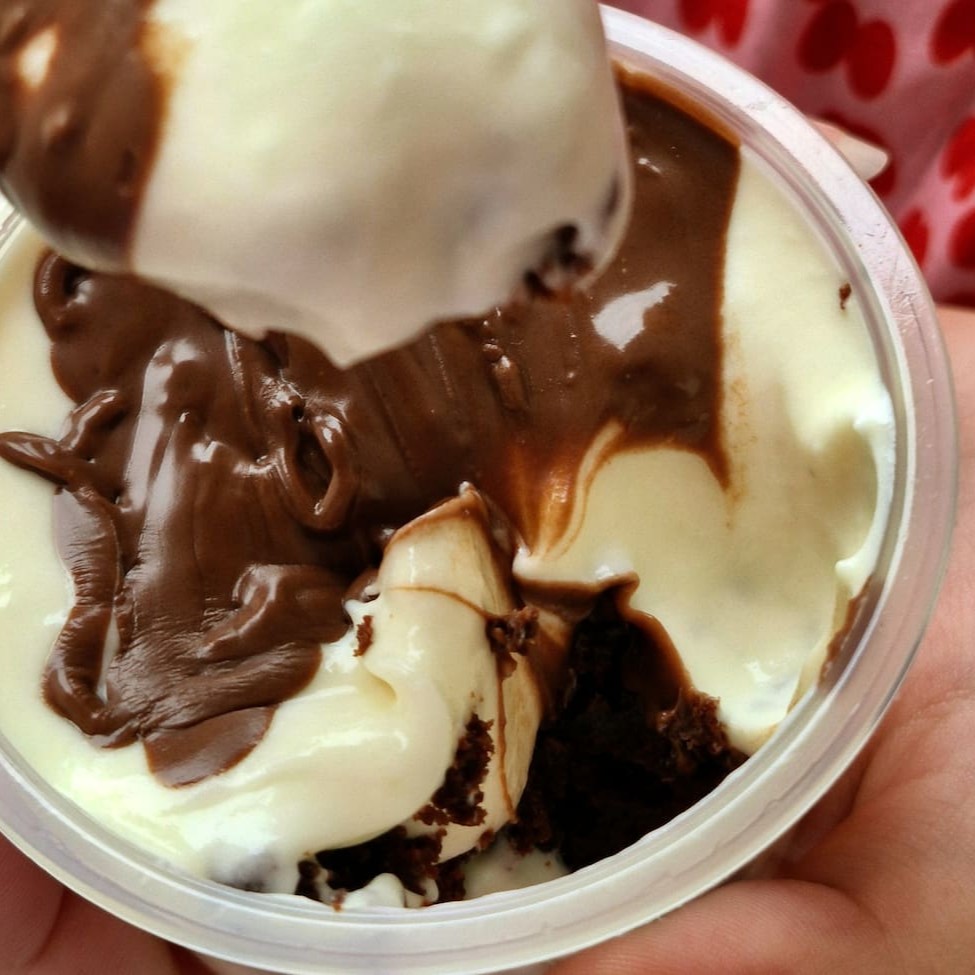 Mergulhe nessa delícia irresistível! Nosso Afogadinho de Brownie vem em um potinho de 145 ml, combinando a cremosidade do mousse de leite Ninho, a intensidade da Nutella e pedaços generosos de brownie macio. Uma sobremesa perfeita para quem ama sabores equilibrados e texturas incríveis em cada colherada!