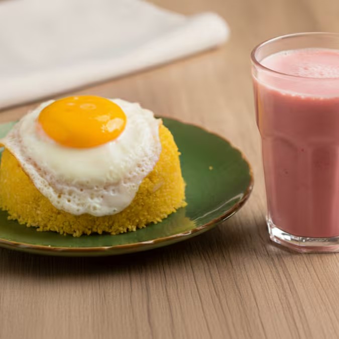 A força da tradição com um toque de perfeição para o seu Dia! Nosso Cuscuz Energético é a combinação ideal de carboidrato complexo e proteína de alto valor biológico. Preparado no vapor com flocão selecionado e coroado com um ovo estalado de gema perfeita.