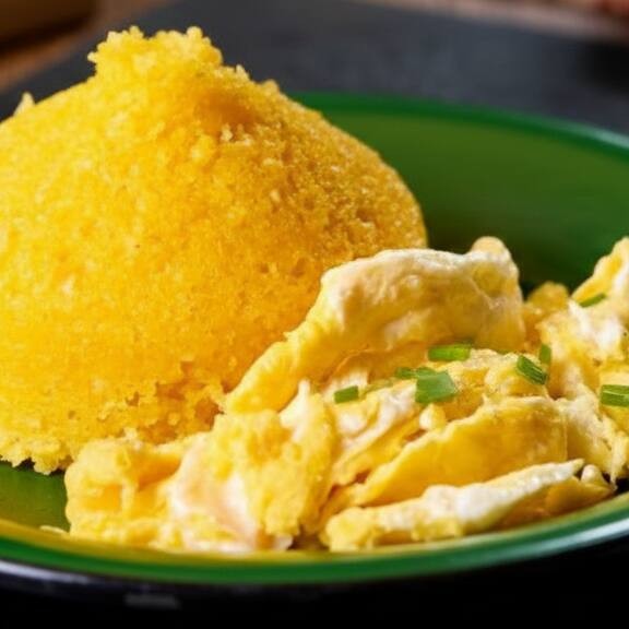 O Prato: 200g de cuscuz nordestino legítimo com 2 ovos mexidos preparados na hora.