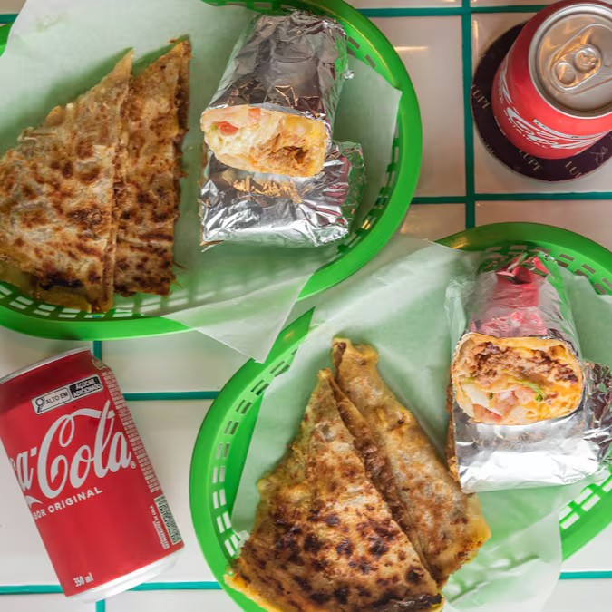 2 burritos + 1 quesadilla + 2 bebidas