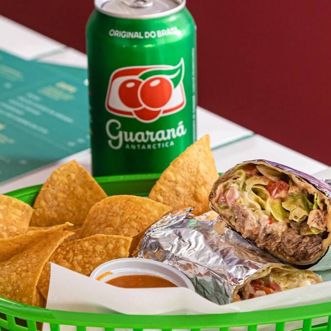 Burrito + tortilla chips + bebida