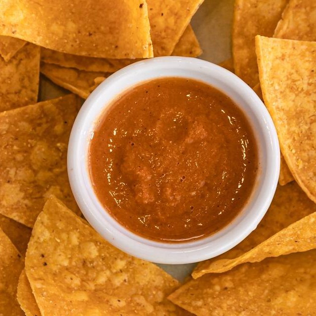 Salsa da casa feita de tomate, cebola, pimentão, mix de pimentas e especiarias. Uma delícia!