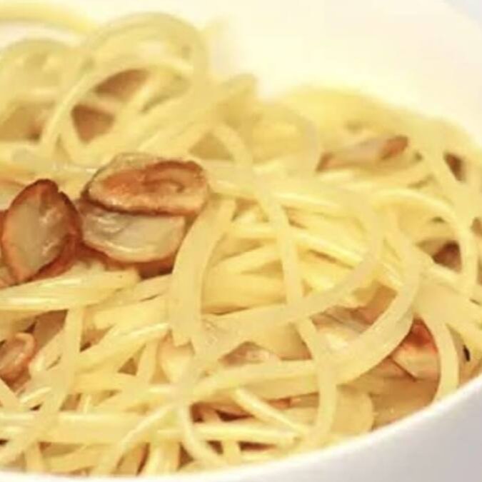 Deliciosa massa com lascas de alho e óleo.