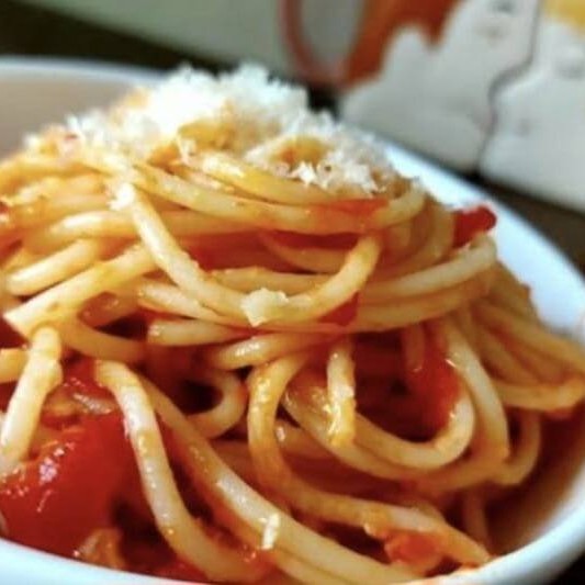 Uma deliciosa massa coberta por um saboroso e bem temperado molho pomodoro.