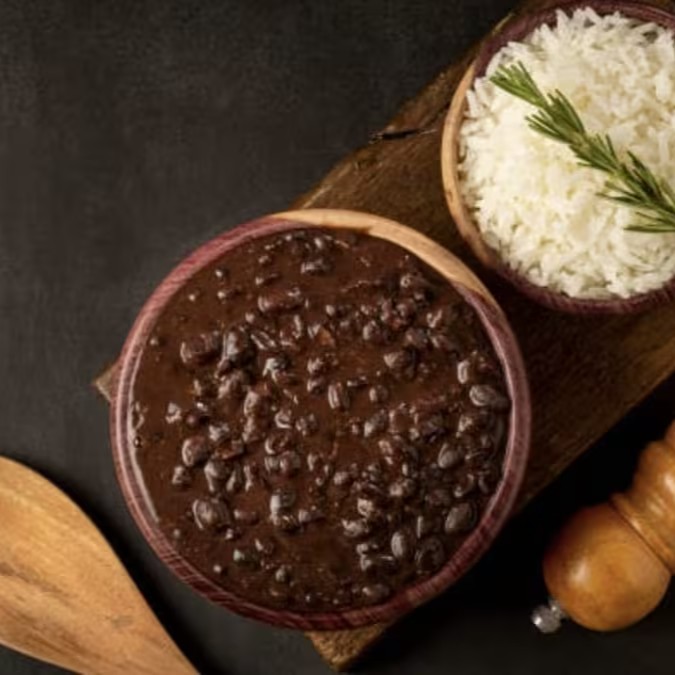 Almoço com gostinho de casa preparado com um delicioso feijão preto, arroz branco prato fino soltinho e um suculento filé de frango, legumes, macarrão alho e óleo ou sugo e farofa crocante da casa.