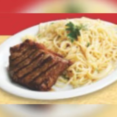 Acompanha: um delicioso espaguete ao molho alho e óleo com alcatra (150g in natura)