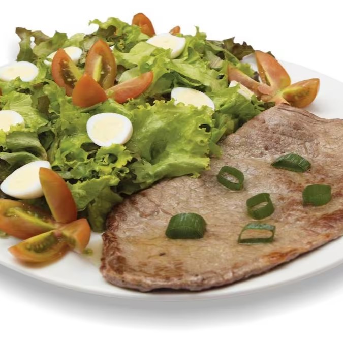 Um mix de verduras e salada frescas do Dia, acompanhado de ovo cozido e podendo ser na opção frango ou bife grelhados, sendo um prato ideal para sua dieta e objetivo