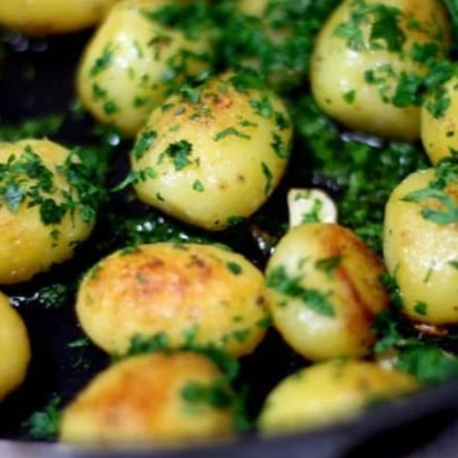 Batatas cozidas e salteados na manteiga.