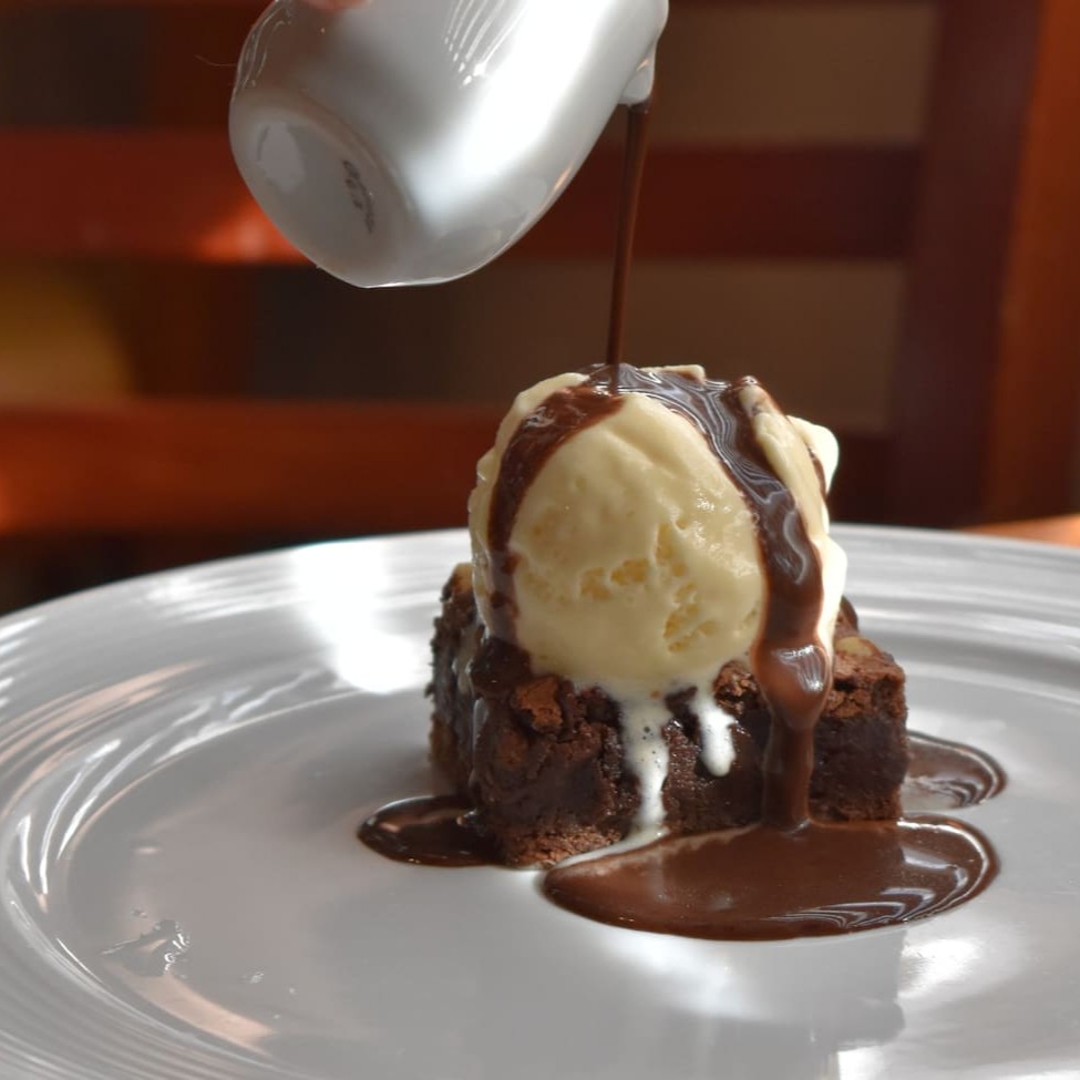 Brownie com castanhas e sorvete de creme