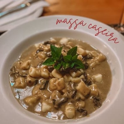 Molho a base de creme de leite, funghi e tomate seco.